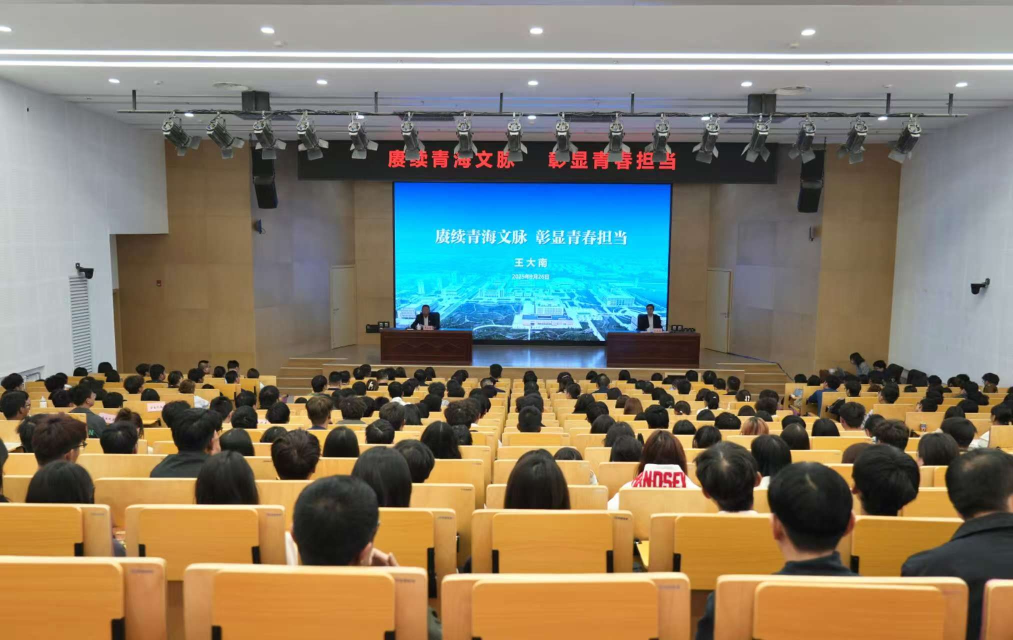 9月26日上午,省委常委、宣传部部长、省总工会主席王大南前往青海理工学院讲授思想政治理论课,围绕“赓续青海文脉 彰显青春担当”主题与广大师生深入交流。他勉励大家深入学习贯彻习近平文化思想,传承弘扬中华优秀传统文化和青海“五个文化”,努力成长为堪当民族复兴重任的时代新人,为以中国式现代化全面推进强国建设、民族复兴伟业贡献力量。